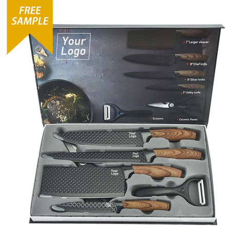 Miễn Phí Mẫu 6-Mảnh Thép Không Gỉ Dao Bộ Đầu Bếp Dao Cho Nhà Hàng Cho Món Quà Biểu Tượng Tùy Chỉnh Messersatz Jytd90